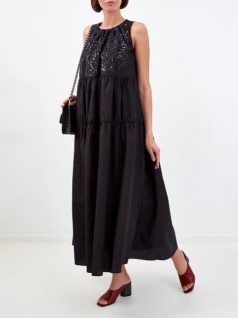 Хлопковое платье Dazzling Tropical Embroidery с пайетками