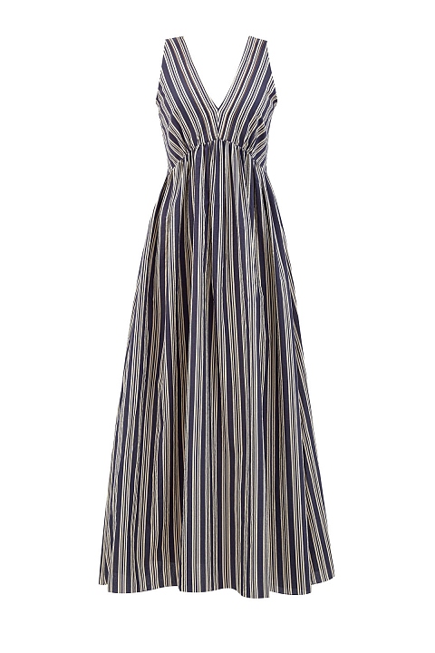 Платье-макси от Brunello Cucinelli из легкого хлопка с добавлением шелковой нити, которая придает поверхности благородный сатиновый блеск. Слегка жатая текстура материала подчеркнута вышивкой Мониль — культовым элементом ДНК бренда. Расслабленный силуэт дополнен женственными деталями: декольтированной спинкой, V-образным вырезом и присборенной отделкой на талии. Детали: комфортный крой с широкими бретелями, подкладка для посадки по фигуре. Сделано в Италии.