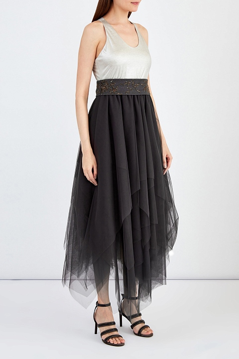 Платье из мерцающего топа, вуалевой юбки и пояса с декором мониль
