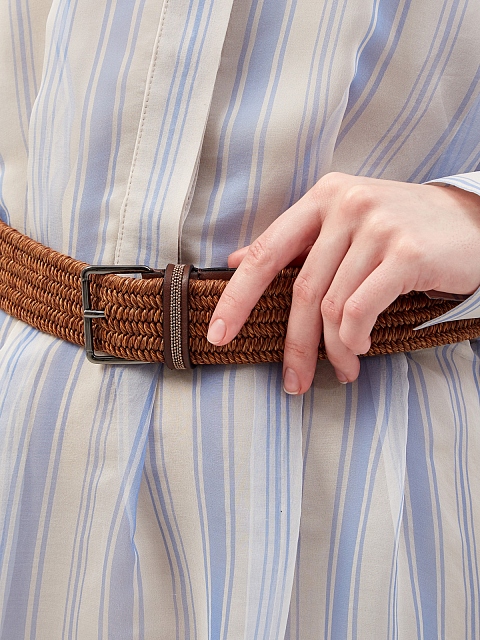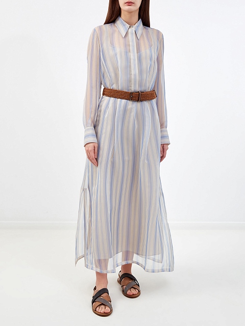 Платье-рубашка из шелкового шифона с плетеным ремнем Rustic