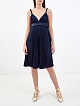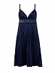 Женственное платье от Burberry создано из гладкого крепдешина. Струящийся шелковый материал с эффектом плиссе подчеркивает глубокий оттенок ночного неба, V-образный вырез на передней планке и спинке придают изделию романтичный акцент. Детали: застежка на потайную молнию, объемные бретели, длина миди.