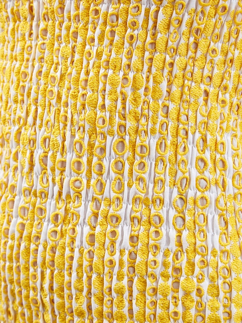 Романтичное платье Megan от Charo Ruiz Ibiza выполнено из дышащего хлопка broderie anglaise, тонкий материал с ажурной вышивкой идеально подходит для летнего сезона. Эластичный лиф обеспечивает комфортную посадку и создает приталенный силуэт. Модель дополнена ярусным подолом с заложенными складками и тонкими завязками.