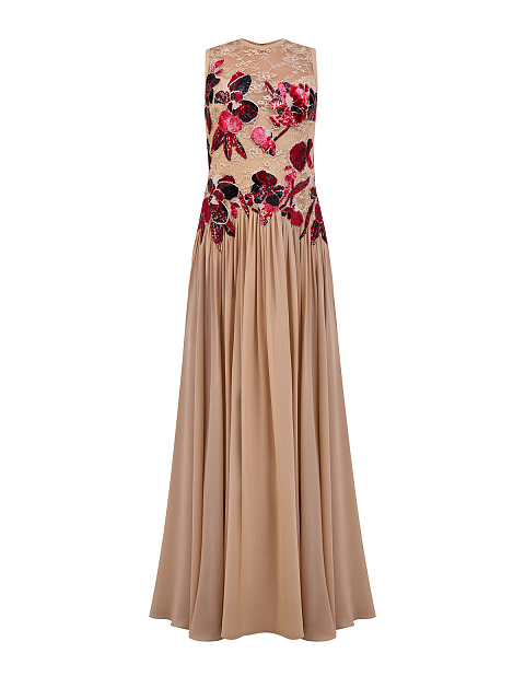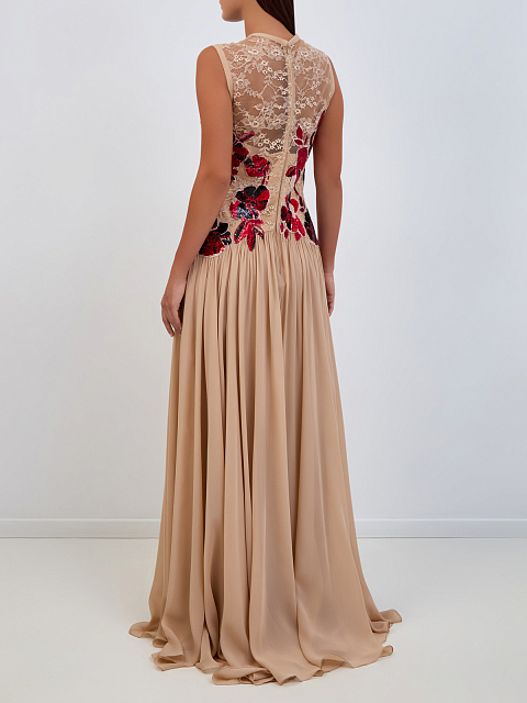 Платье из шелка и кружевного тюля с ручной вышивкой пайетками