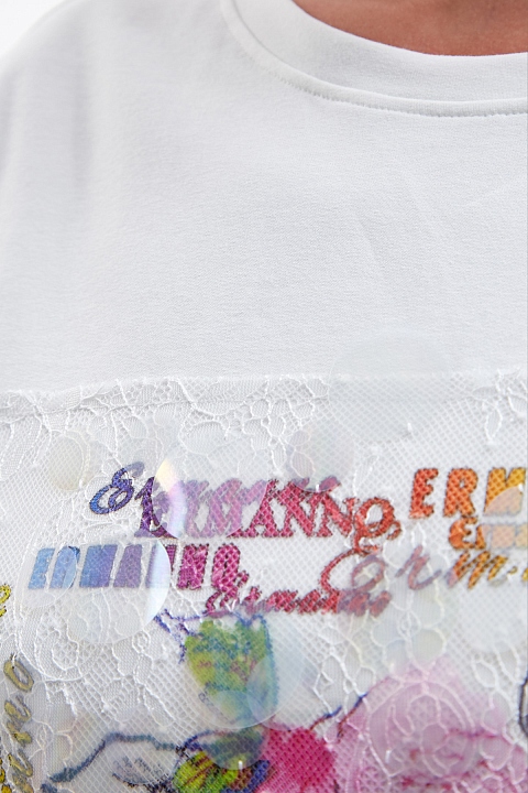 Платье-футболка из хлопкового футера с кружевной аппликацией