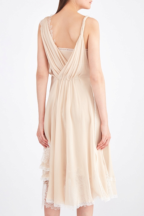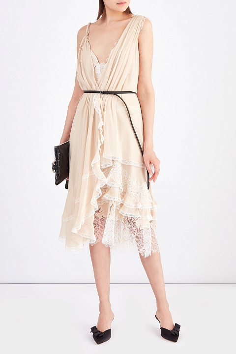 Шелковое платье асимметричного кроя с кружевной отделкой подола