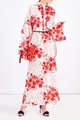 Шелковое платье-макси в стиле кимоно с цветочным принтом