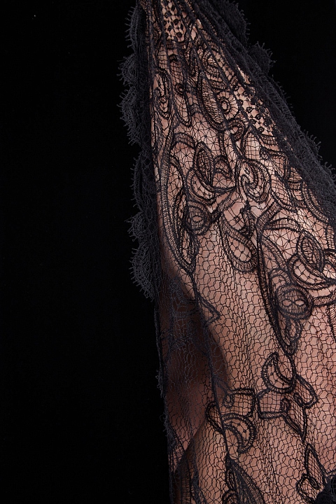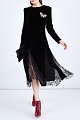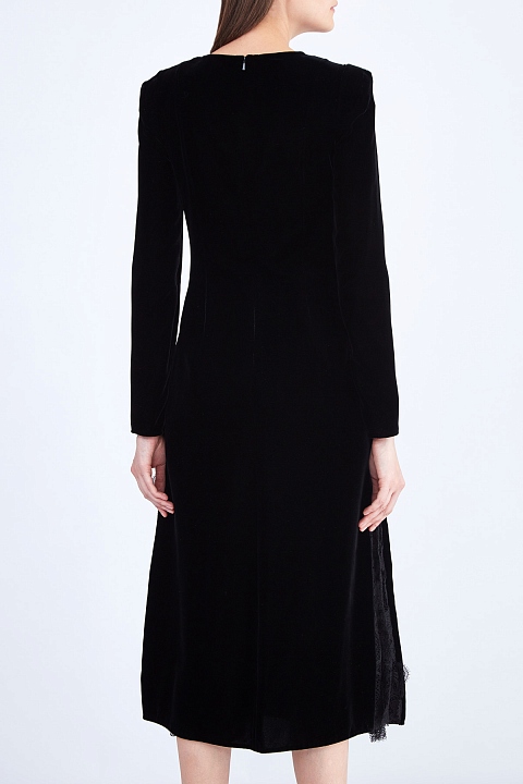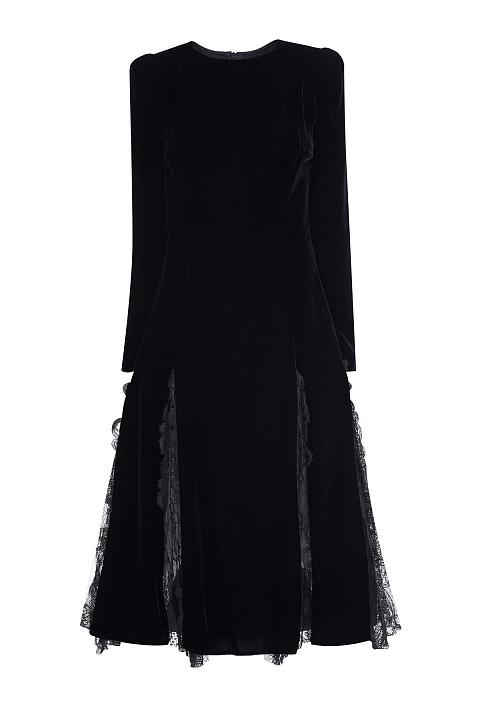 Платье из плотного бархата со вставками из плиссированного кружева в тон