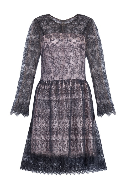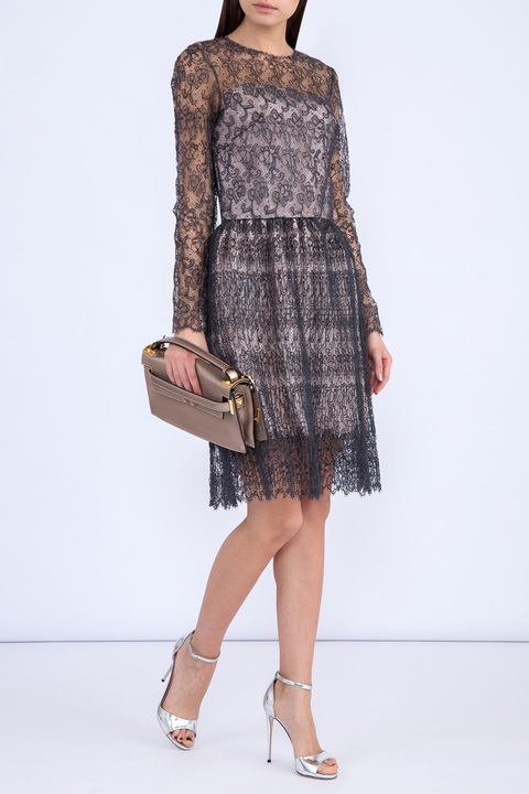 Платье с плиссированным подолом и верхним слоем из кружева
