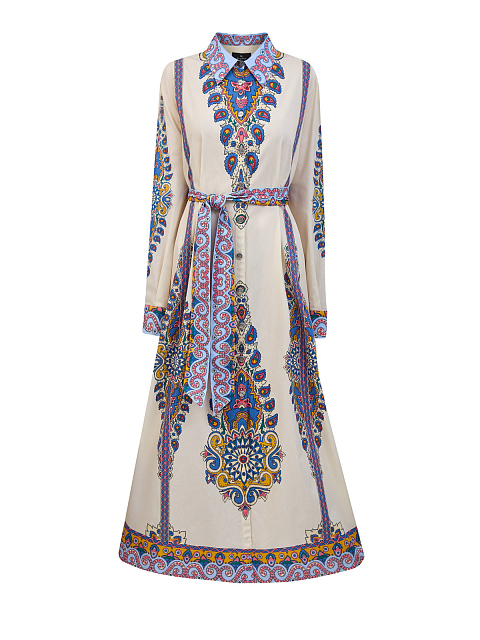 Платье-рубашка из хлопкового поплина с узором пейсли и поясом