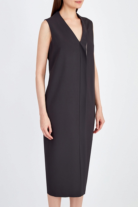 Платье-миди с асимметричной отделкой декольте и ювелирной вышивкой