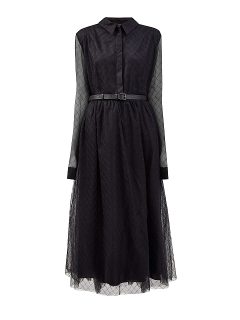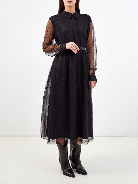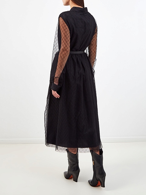 Двухслойное платье-шемизье из полупрозрачного тюля с поясом