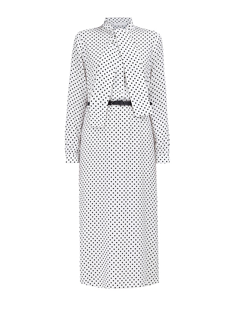Платье из струящегося сатина с поясом и принтом в горошек