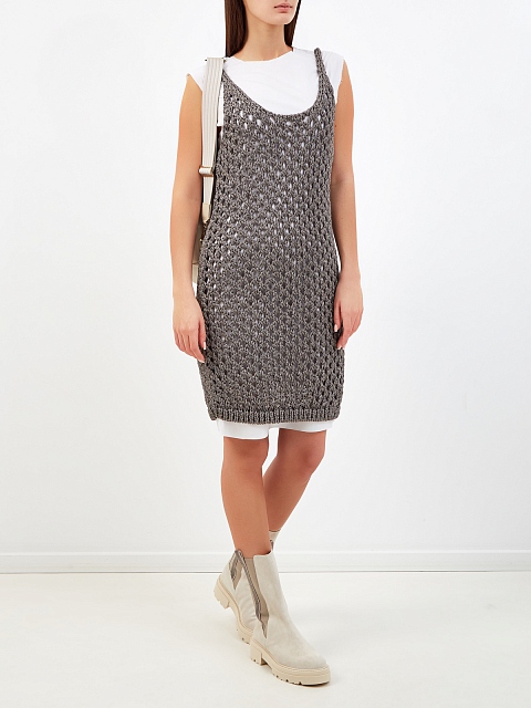 Платье 2 в 1 из металлизированной пряжи крупной вязки