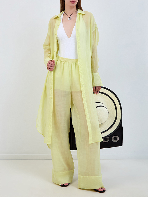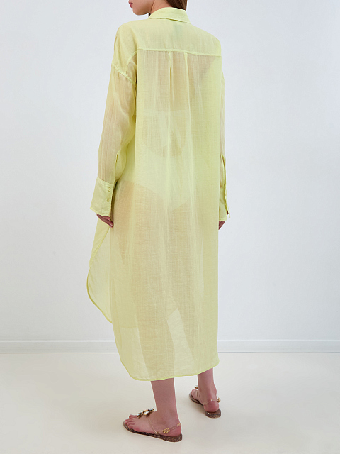Удлиненное платье-рубашка из полупрозрачной ткани рами