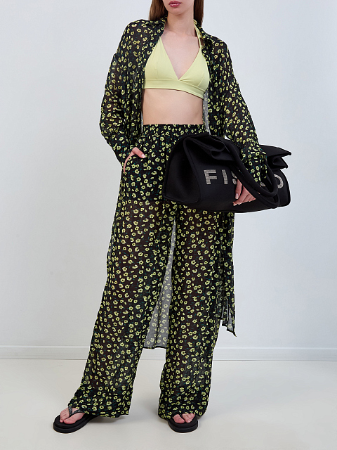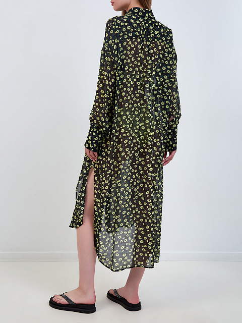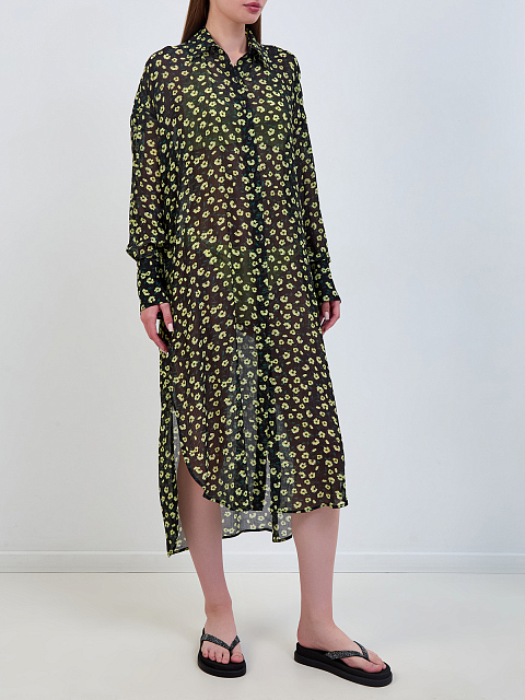 Легкое платье-рубашка из вискозы и шелка с принтом