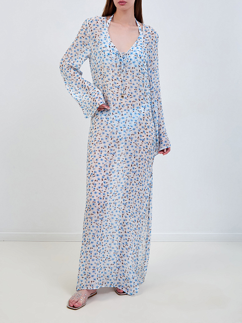 Пляжная туника из вискозы и шелка с флористическим принтом