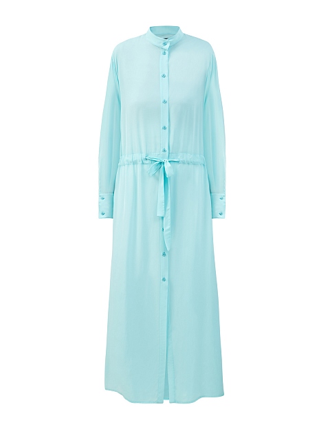 Легкое платье-рубашка с поясом и разрезами