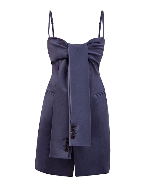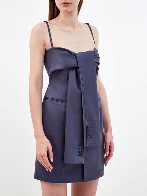 Платье-мини из атласной шерсти с деталями в стиле пиджака