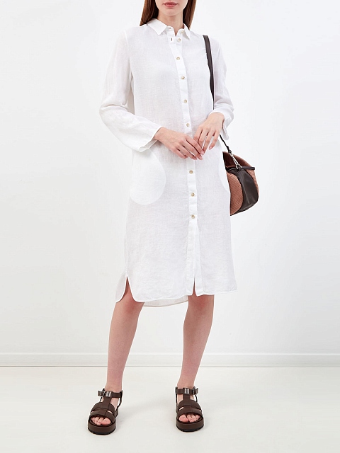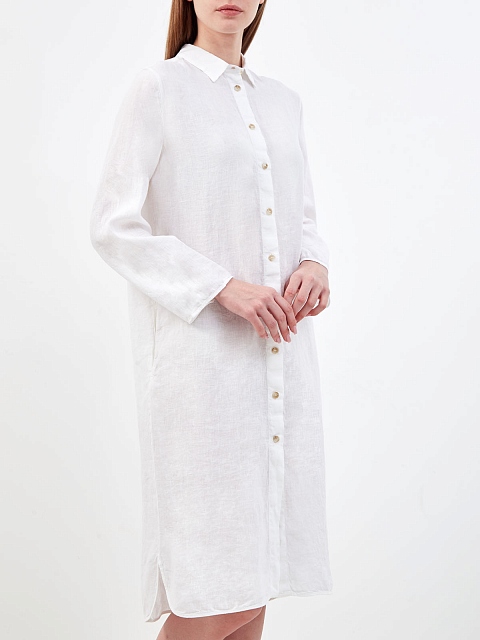 Стиль: Платье-рубашка, Миди, Однотонный, Длинный рукав