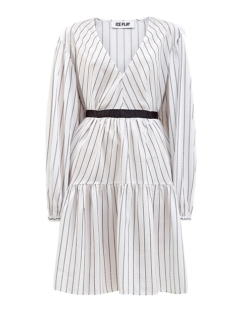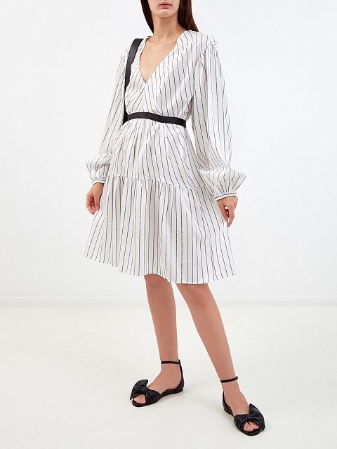 Платье с объемными рукавами и поясом-лентой