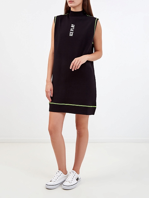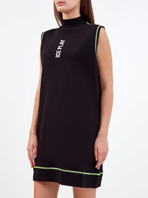 Платье в спортивном стиле с контрастной прострочкой и принтом