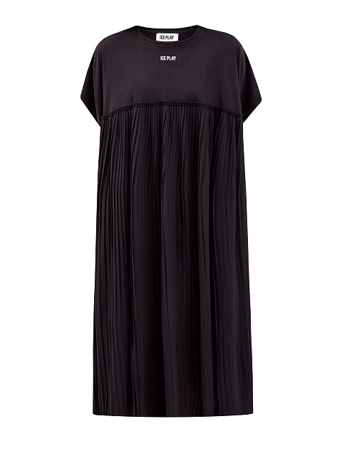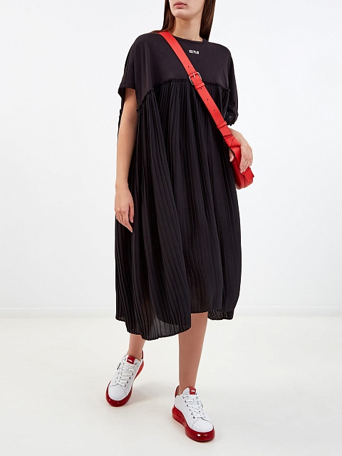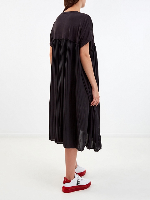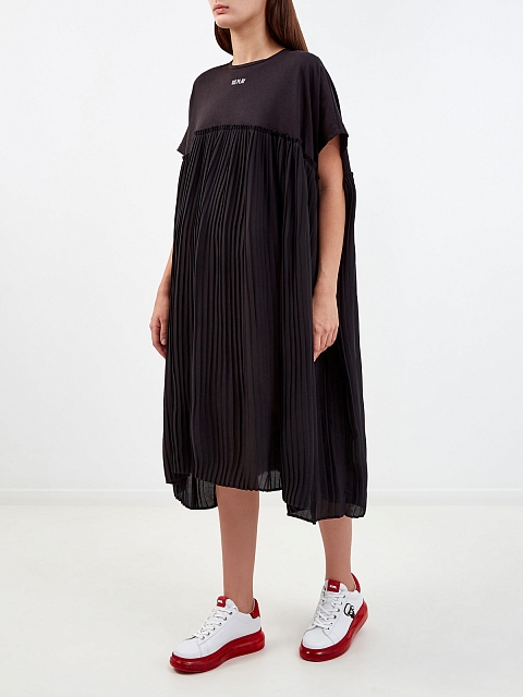 Стиль: Платье-футболка, Короткий рукав, Миди, Однотонные, Плиссированные
