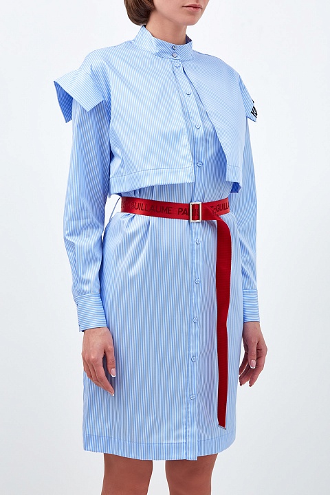 Платье-рубашка из хлопка с контрастным поясом и кейпом