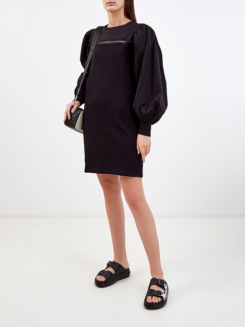Стильное платье-толстовка в современном исполнении от Karl Lagerfeld выполнено из комбинированного хлопка. Свободный крой и потайные карманы обеспечивают максимальный комфорт в движении. Модель дополнена фирменной отделкой в стиле KARL — глянцевой тесьмой с логотипом в тон на груди.