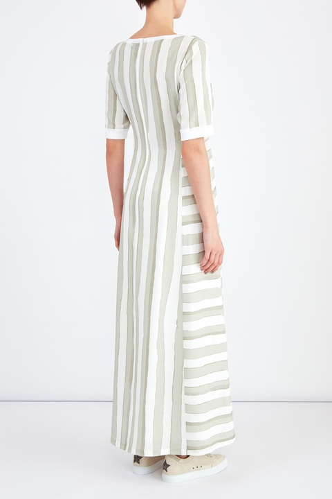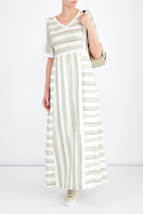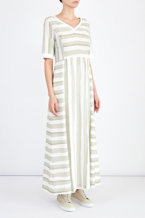 Струящееся платье-макси с принтом в полоску в натуральных тонах