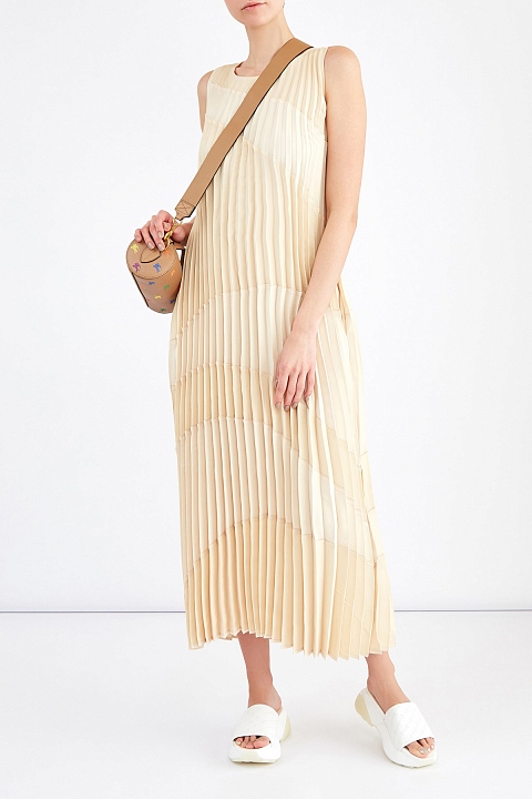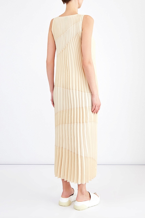 Плиссированное платье из ткани с золотым отливом по поверхности