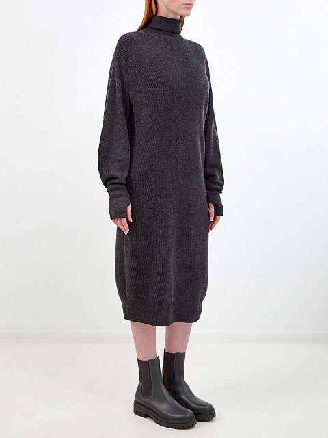 Платье-джемпер из шелка и шерсти в английскую резинку