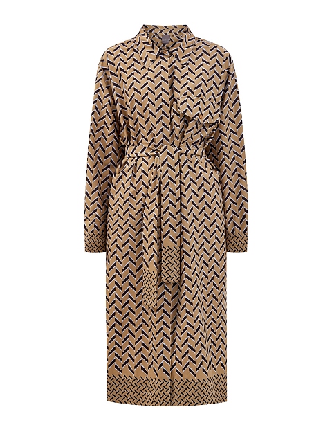 Стиль: Платье-рубашка, Длинный рукав, Миди, С принтом, С поясом