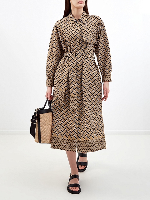 Платье-рубашка из гладкого хлопка с оптическим принтом