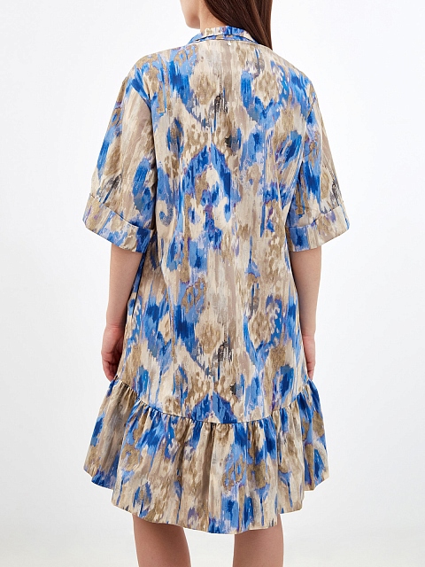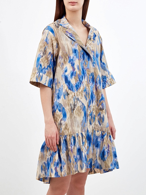Платье-рубашка с акварельным принтом и объемным подолом