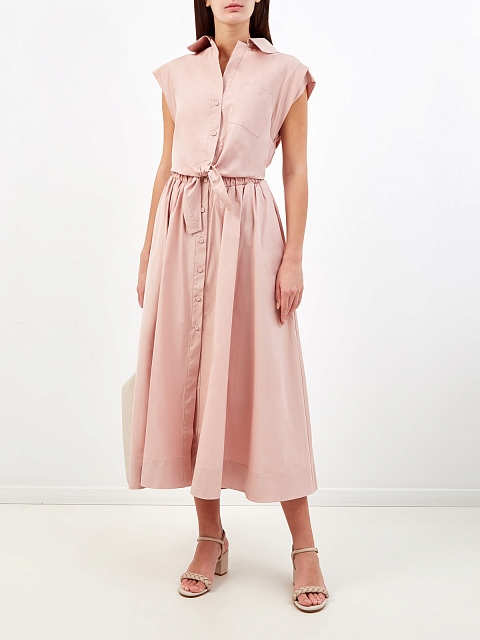 Платье из хлопка с декоративным узлом и эластичным поясом