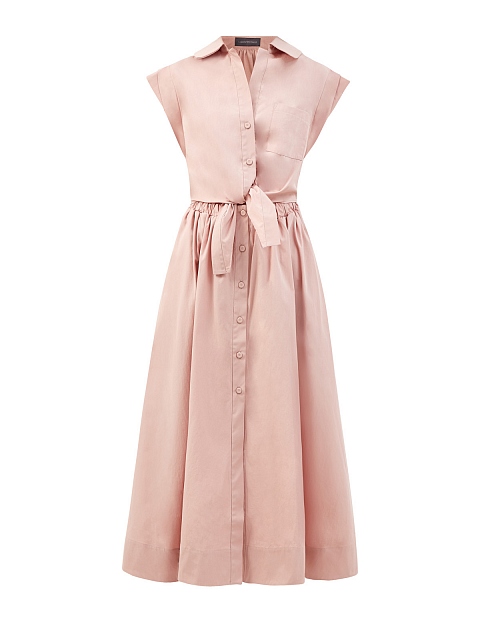Стиль: Платье-рубашка, Миди, Однотонный, С поясом, Короткий рукав