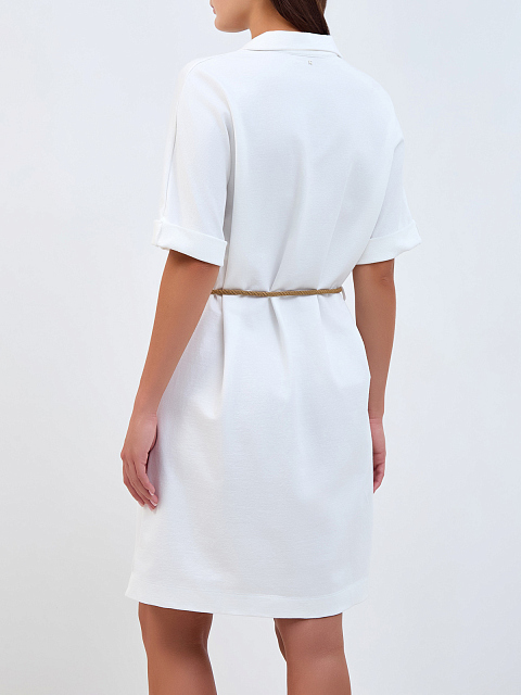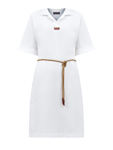 Платье-миди из хлопка с отложным воротом и плетеным поясом