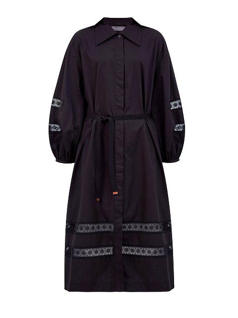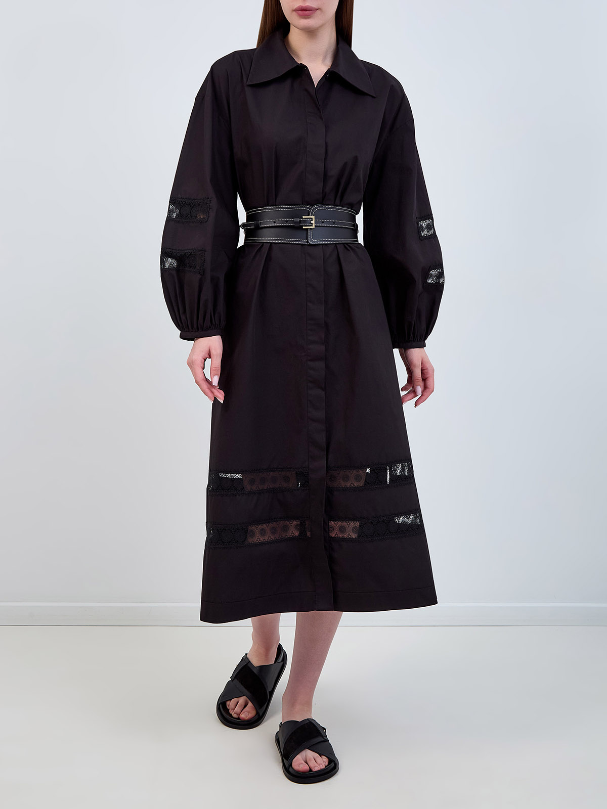 Хлопковое платье-миди с кружевными вставками и поясом