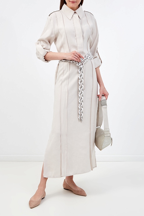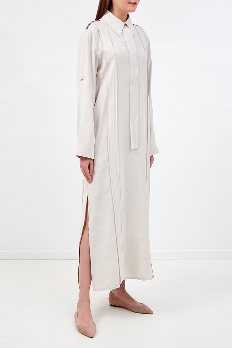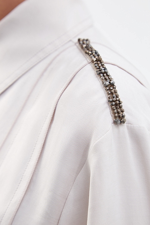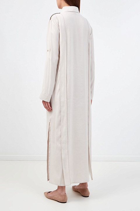 Платье-рубашка с вышивкой бисером и разрезами по бокам