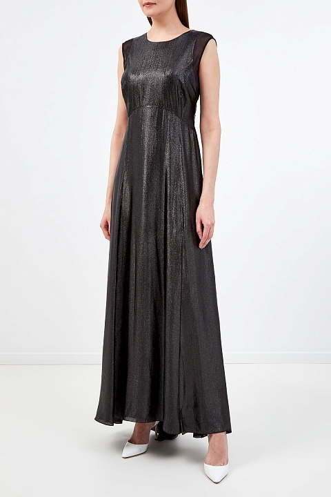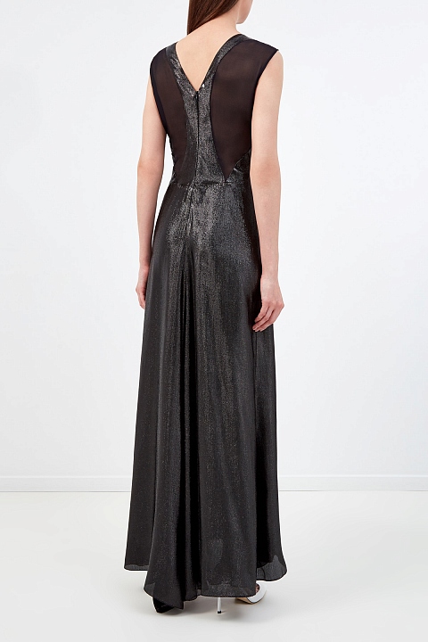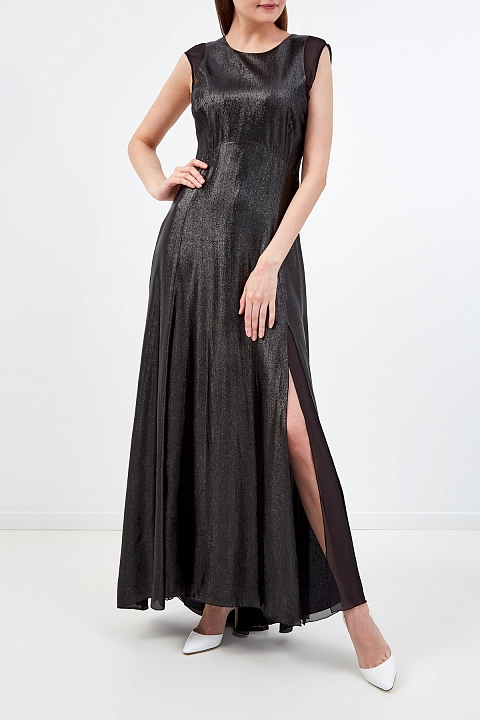 Элегантное вечернее платье от Lorena Antoniazzi. Для создания модели была выбрана фактурная ткань с мерцающей отделкой. Струящийся крой создает эффект «жидкого металла» и повторяет каждое движение. Вставки из полупрозрачного шелкового шифона подчеркивают плавные линии. Детали: декольтированная спинка в V-образным вырезом, потайная молния, подкладка для посадки по фигуре, высокий разрез на подоле. Сделано в Италии.