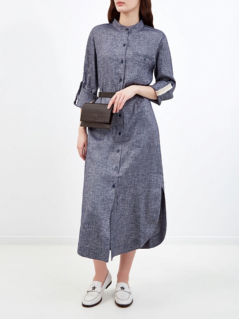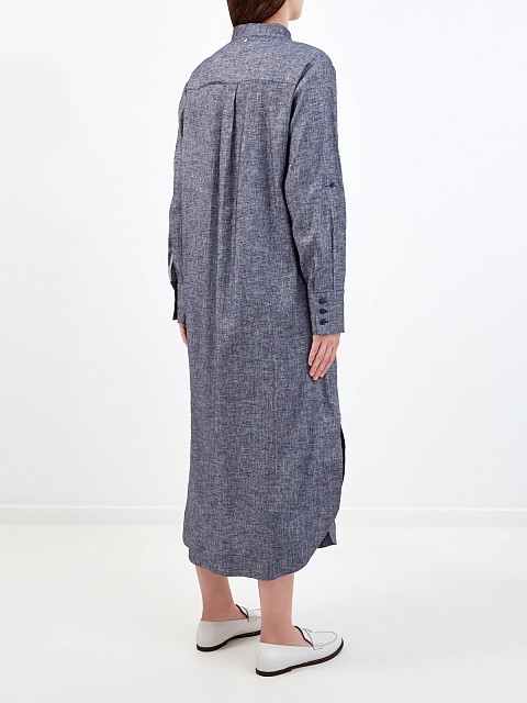 Платье-рубашка из льняной саржи с меланжевым эффектом