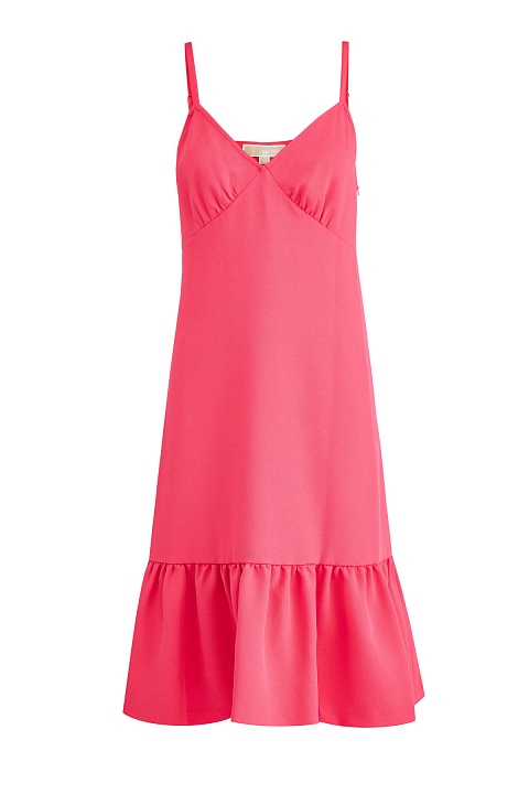 Яркое платье-миди в стиле спортшик от MICHAEL Michael Kors создано из легкого пике с фактурной поверхностью. Модель сложного кораллово-розового оттенка дополнена формованным лифом, а также отрезным подолом с присборенной отделкой. Детали: тонкие бретели с возможностью регулировки, застежка на потайную молнию в боковом шве.