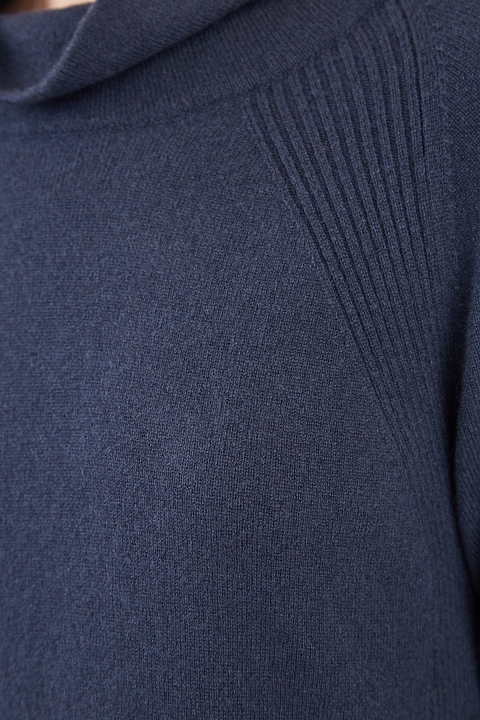 Базовое платье-баллон из кашемировой пряжи со вставками в рубчик