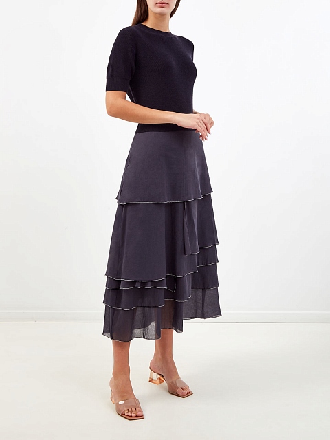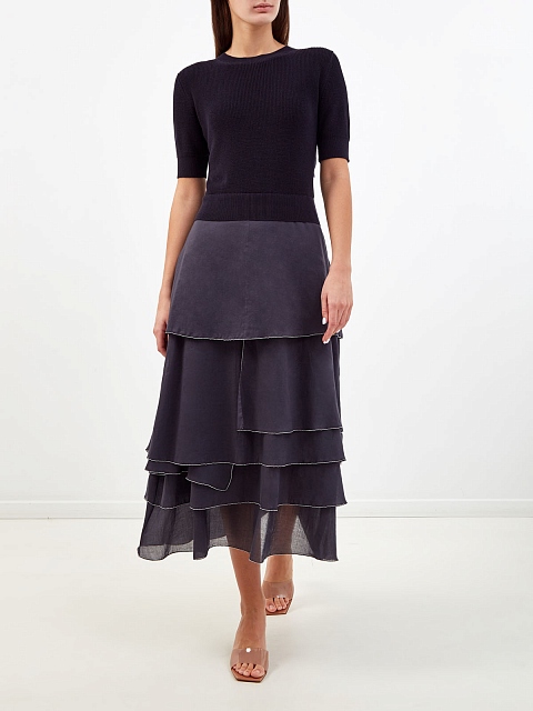 Комбинированное платье с объемным подолом из органзы