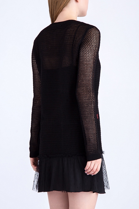 Двухслойное платье из шерсти с аппликацией и полупрозрачного кружева
