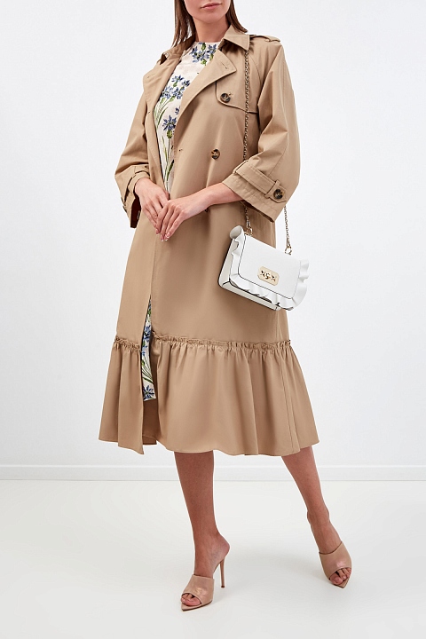 Легкое платье свободного кроя от REDValentino создано из тонкого шелка в нежном пудровом оттенке. Струящийся материал украшен коллекционным принтом «Василек» в природных тонах. Объемные короткие рукава и оборки по подолу подчеркивают романтичный стиль изделия. Детали: круглый вырез горловины, потайная застежка на молнию на спинке.