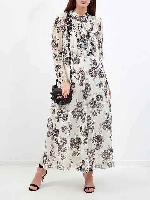 Женственное платье в пол от REDValentino создано из гладкого струящегося шелка. Модель в нежном кремовом оттенке дополнена контрастным флористическим паттерном по всей поверхности. Элегантный стиль изделия подчеркивает объемный бант из легких лент, продолжающих воротник-стойку. Комбинация на тонких бретелях в белом цвете обеспечивает максимальный комфорт. Детали: застежка на потайную молнию на спинке, вытачки для посадки по фигуре, приталенный силуэт.