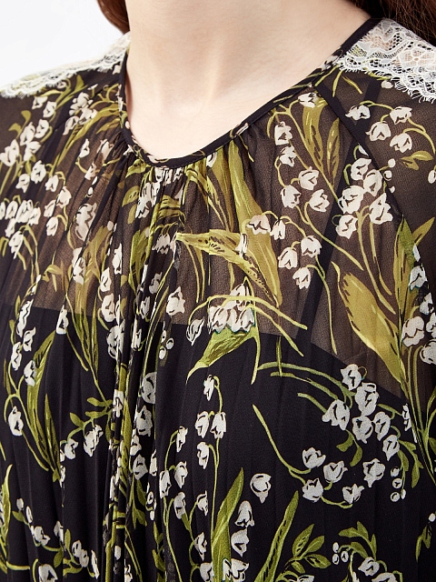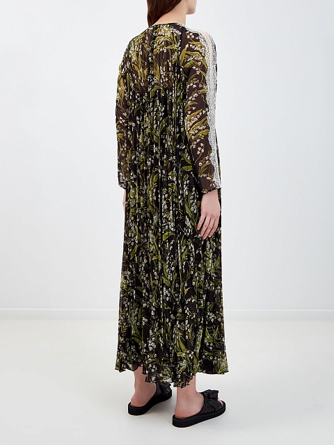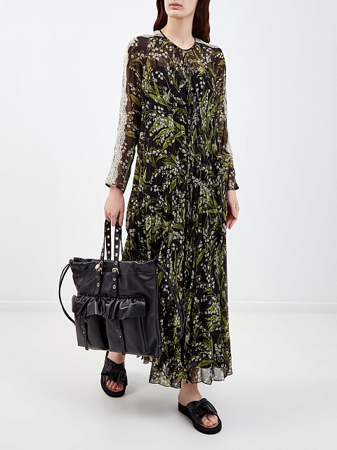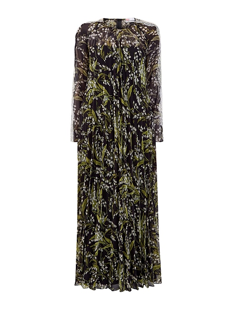 Женственное платье в пол от REDValentino создано из тонкого струящегося муслина. Модель в черно-зеленых тонах дополнена фирменным паттерном May Lily по всей поверхности. Элегантный стиль изделия подчеркивают кружевные вставки на рукавах и заложенные складки, комбинация на тонких бретелях обеспечивает максимальный комфорт. Детали: застежка на спинке, свободный силуэт.