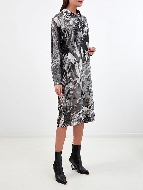 Платье-рубашка из струящегося шелка с принтом