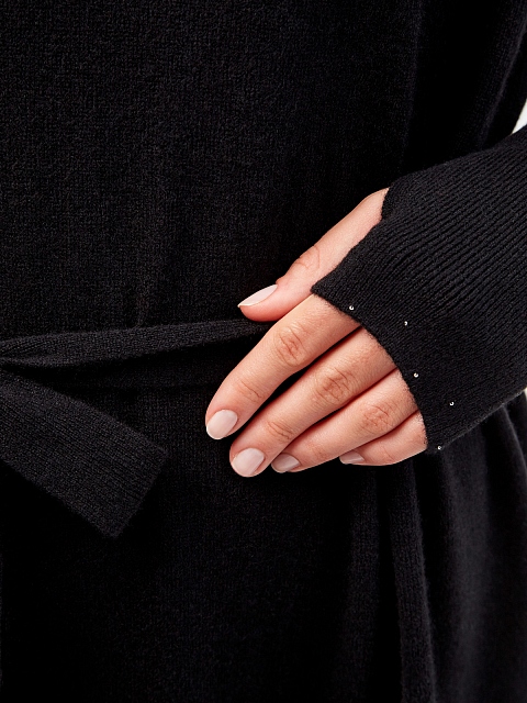 Стиль: Трикотажные, Макси, Длинный рукав, С поясом, Однотонные